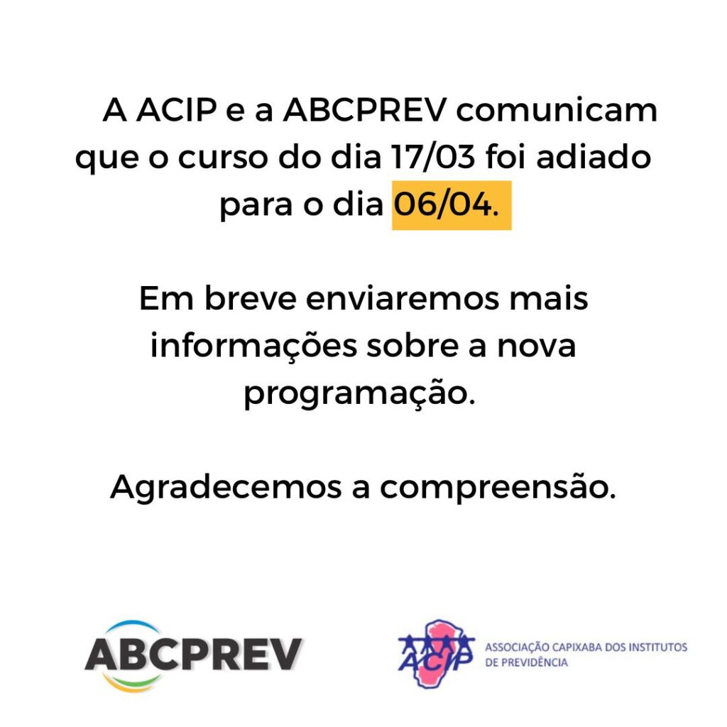 A ACIP informa que o Encontro Previdenciário, organizado em conjunto com a ABCPREV, que aconteceria no próximo dia 15, foi adiado para 06/04/2022, conforme divulgação abaixo.