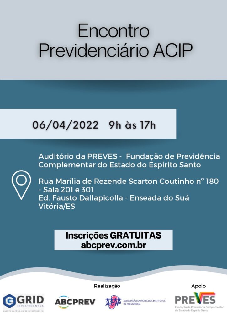 mar212022Notícias Compartilhe!Category: NotíciasPor Acip21 de março de 2022Navegação de post:AnteriorPost anterior:Portaria PRES/INSS Nº 1.425, de 17 de março de 2022, estabelece diretrizes sobre a análise dos requerimentos de compensação previdenciáriaPróximoPróximo post:Encontro Previdenciário ACIP reúne representantes de diversos Institutos CapixabasPostagens RelacionadasACIP de volta ao Conselho Nacional dos Dirigentes dos Regimes Próprios de Previdência Social (CONAPREV)13 de agosto de 2025ACIP busca apoio da AMUNES para fortalecer articulação pela aprovação da proposta da Emenda à PEC nº 66/202312 de junho de 2025ACIP na AMUNES: pautas e alinhamentos14 de abril de 2025ACIP elege nova Diretoria e reafirma compromisso com fortalecimento dos RPPS8 de abril de 2025ACIP convoca associados para Assembleia geral Ordinária20 de março de 2025Eleição ACIP 2025 – Edital de Convocação12 de março de 2025